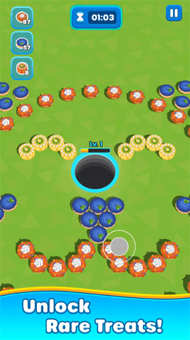 吞噬食物是一款相当好玩的休闲类游戏。在这个满是美食的地方中,你需要操控黑洞不断地吞噬更多食物,只有在达到了相应的数量要求之后才能获得胜利,游戏之中还会有关键的沙漏计时器,需在这一段时间之内完成挑战。黑洞的大小等级将会随着吞噬食物总量而变化,而且还能提升速度,你可在这样的条件之下尽快地收获更多的助力,也就可以在极短的时间之内尽快消灭这些美食。通过黑洞的视角可以观察这些水果蔬菜,感受到不同的体验,也会有一定的压迫感,收获更多奖励。如果你也对这款游戏感兴趣的话,赶快来试玩一下吧!