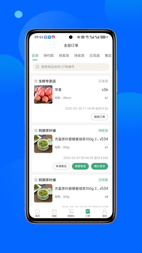 通过在线管理全部购物订单,并且查看订单信息,帮助用户掌握发货进度;
