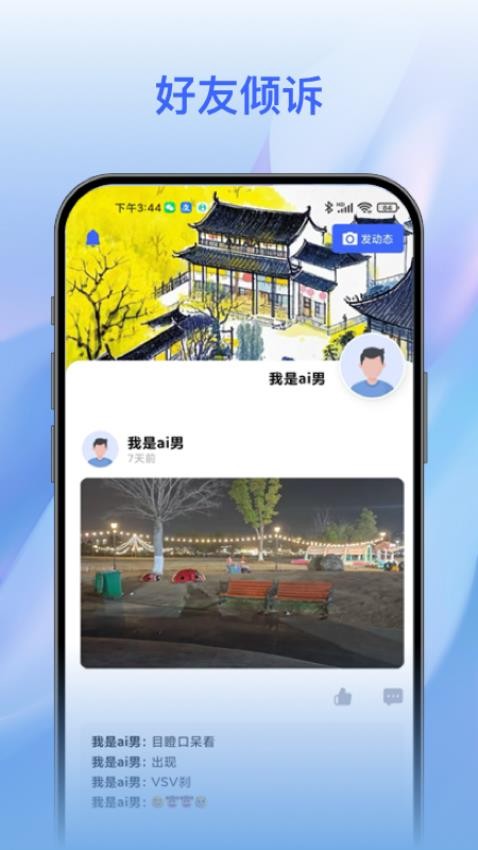 在朋友圈可以看到好友倾诉的动态,你可以在下方评论,倾听好友烦恼,为对方排忧解难。