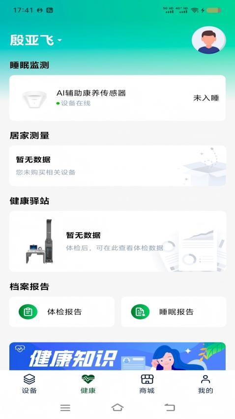 根据健康设备监测的数据进行健康分析,能够获得专属的老人健康报告分析;