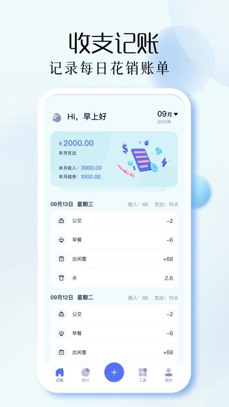 用户能够使用软件轻松进行记账,用户能够随时记录不同的账单数据等;
