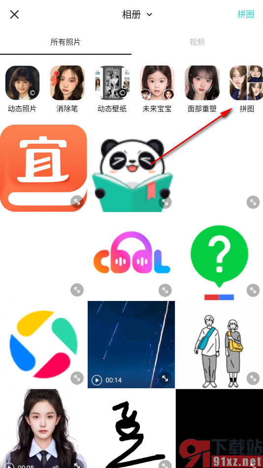 2.这时候在打开的窗口中即可查看到顶部位置显示的【拼图】选项,将其点击打开就可以了,如图所示。