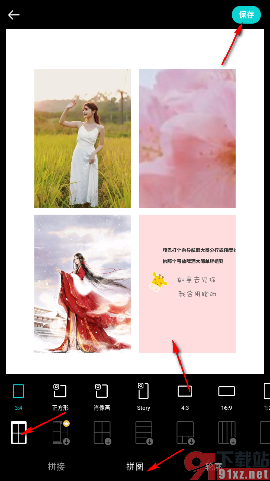 4.导入成功后,在打开的页面下方位置即可选择一个自己喜欢的拼图样式,然后点击上方的保存按钮即可保存拼图。