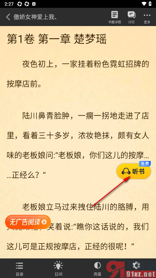1.当用户点击打开了手机上的饭团追书APP这款软件之后,在页面上选择喜欢的书籍点击打开即可进入到阅读页面中。