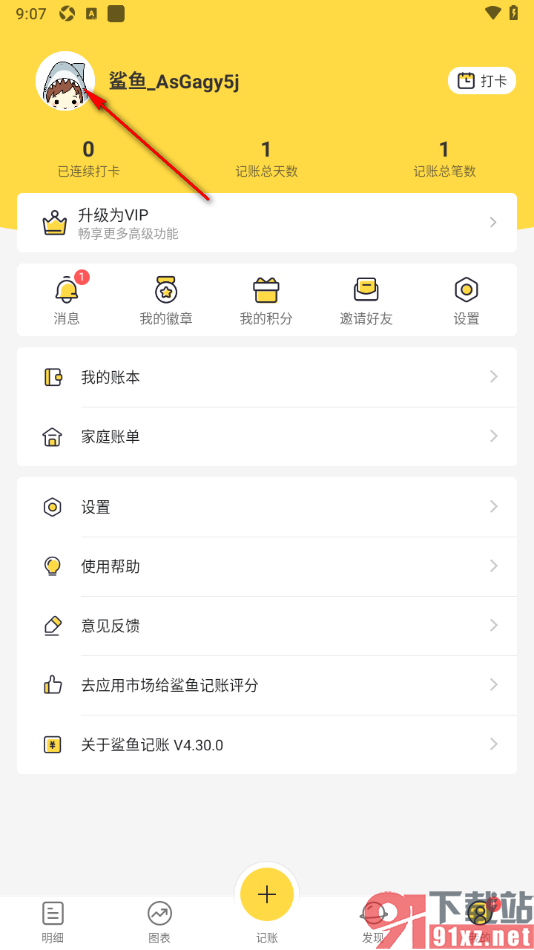 鲨鱼记账APP是一款可以帮助用户记录收支账单的手机软件,直接将其安装到手机上即可注册使用,该软件中记录的账单数据是非常重要的,因此用户可以设置手势密码防止其他人轻易打开该软件查看账单数据,不过一些用户在对比其他的记账软件后,发现其他记账软件更适合自己,更能满足自己的需求,于是想要注销该软件账号,将该账号下的数据全部清空操作,防止数据被遗漏的情况发生,那么用户可以直接将用户头像点击打开进入到个人资料页面中,即可找到相关功能来设置,一起来看看下方的教程吧。