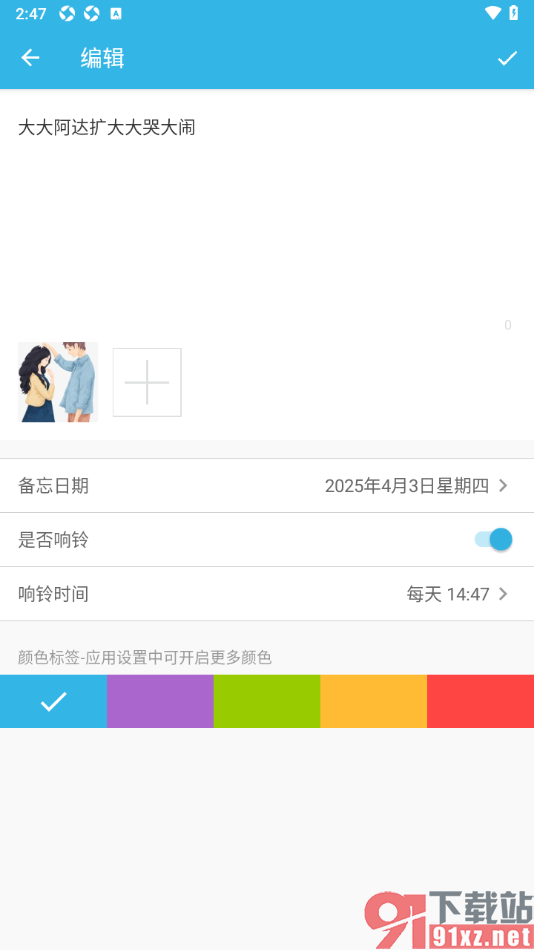 5.这时候会返回到编辑备忘录的页面中,选择一个标签颜色,之后点击上方的√按钮即可保存。