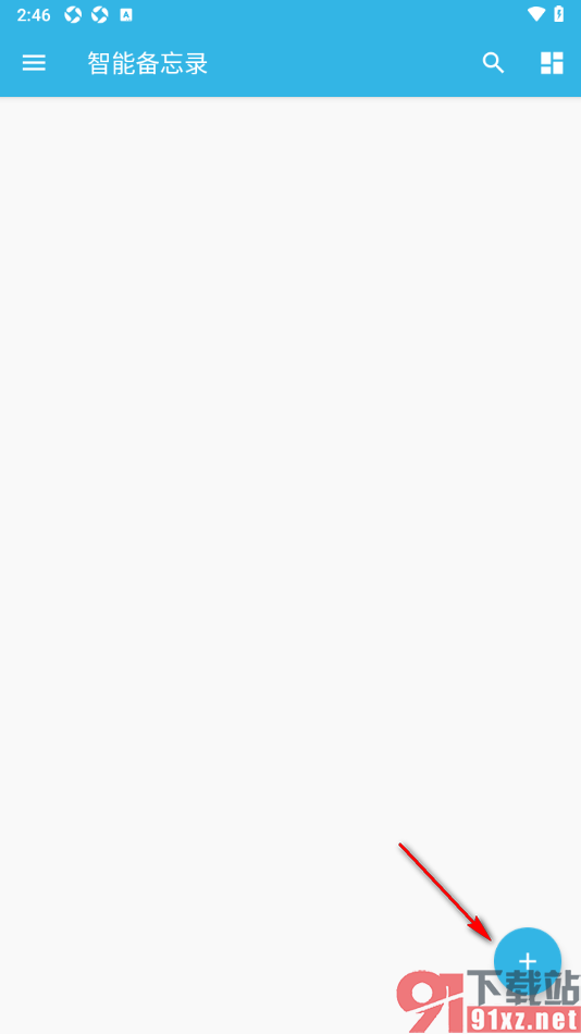 1.当用户将手机上的智能备忘录app点击打开之后,在页面右下角有一个加号图标按钮,将其点击打开。