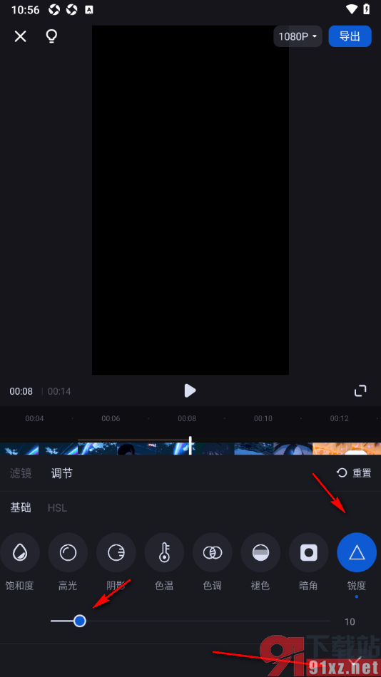 5.这时候即可查看到【锐度】选项,将其点击选中,再调节一下滑动条参数即可保存设置。