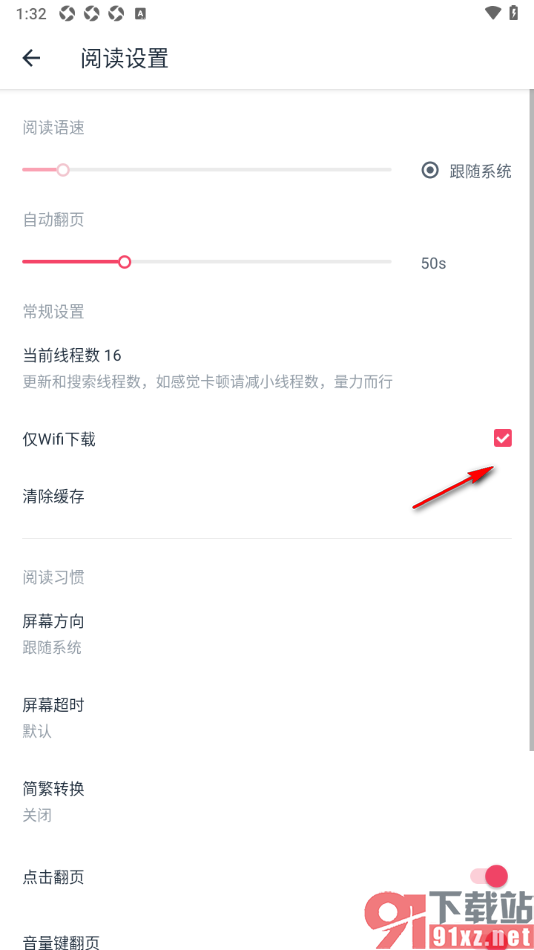 一些用户在使用荔枝阅读APP这款软件的过程中,有些时候想要知道如何才能在该软件中将仅wifi下载功能关闭掉,那么用户可以参考上述的教程方法来设置就好了,此外用户还可以设置点击翻页、音量键翻页等内容,有需要的用户可以来操作试试。
