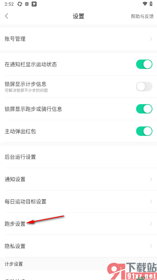 3.这时候用户可以查看到页面下方显示的【跑步设置】功能,将其点击打开即可。
