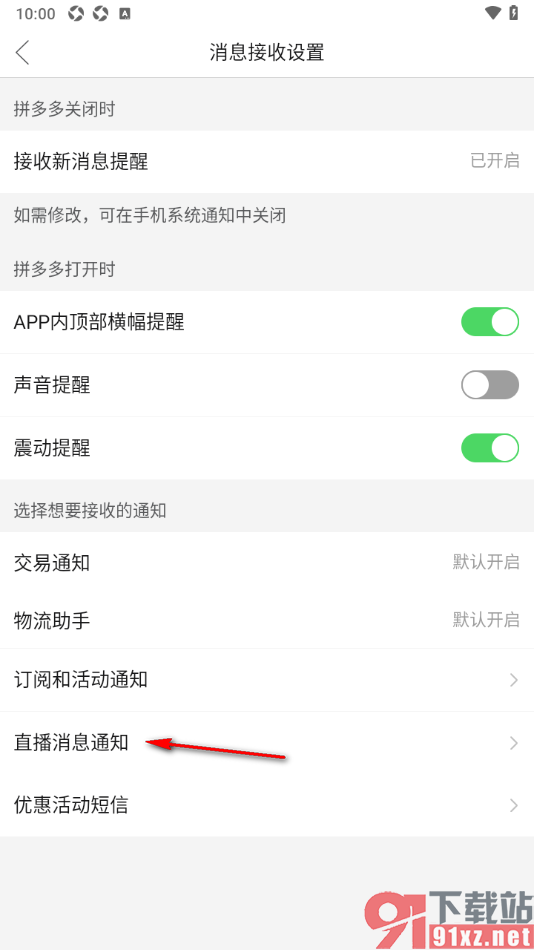 拼多多APP成为当前广大用户十分喜欢的一款线上购物软件,在该软件中所提供的商品信息十分的多样,各种品牌旗舰店齐聚该平台,让用户可以浏览自己想要的商品信息,同时还可以在该软件中通过店铺直播下单想要的商品,而有些时候关注的店铺多了,当该店铺直播时就会很快速的通知用户查看,但是一般情况下大部分用户在自己没有任何购买需求的情况下是不会进入到直播间的,对此会忽略这样的直播提醒,对此用户可以设置禁止接受直播提醒即可避免提醒通知打扰到自己,快来看看下方的教程吧。