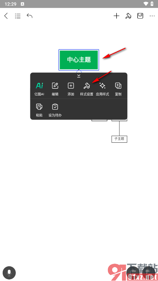 3.之后我们可以将中心主题框点击选中,在旁边出现的工具栏中将其中的【样式设置】选项点击一下进入,如图所示。
