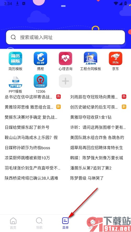 2、第二步,想要将网页设置为无图模式时,我们需要在浏览器页面下方点击打开“菜单”选项