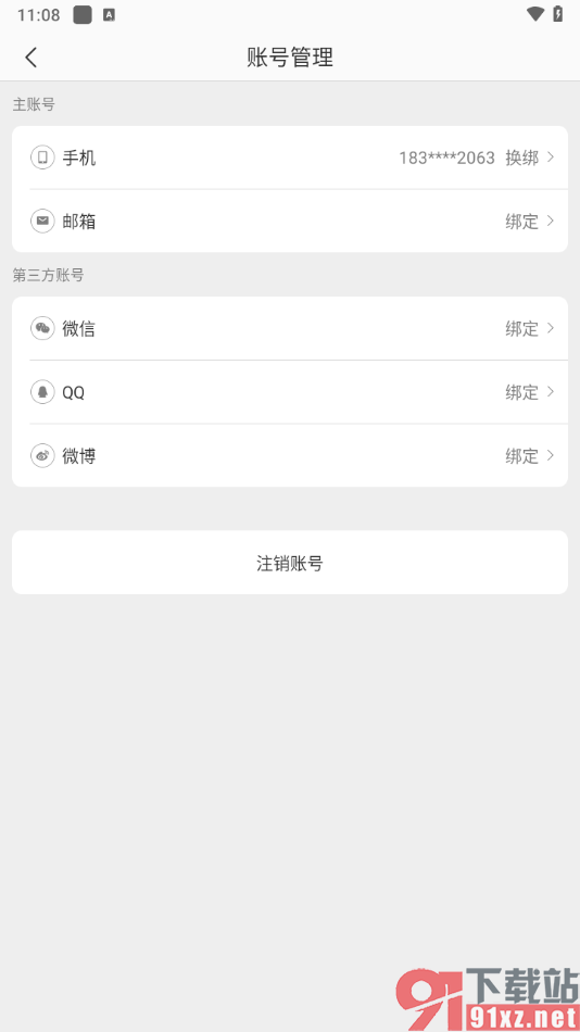 5.在该页面上,你还可以设置一下更换绑定的手机号,以及绑定邮箱、qq或者是微博等相关内容,甚至还可以注销我们的用户账户,如图所示。