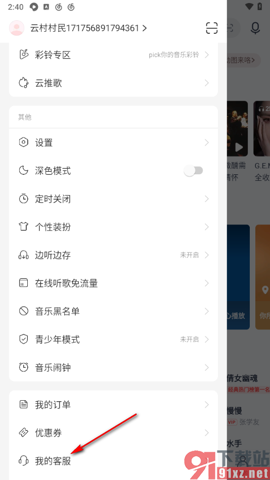 2.随后会弹出一些相关的设置选项,我们需要找到【我的客服】选项,在底部位置即可找到,将其点击打开。