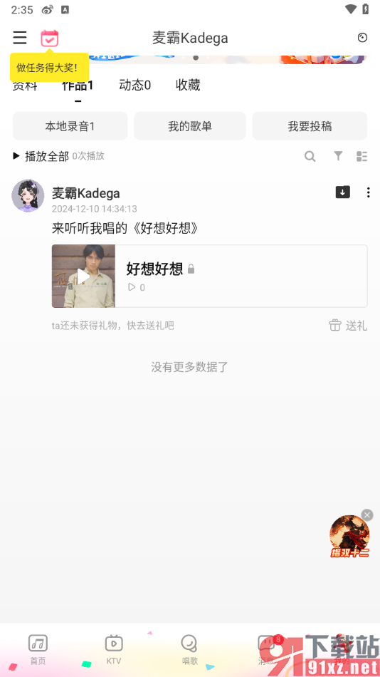2.在打开的页面上,我们即可查看到平时发布的唱歌作品,将其后面的三个点点击打开,如图所示。
